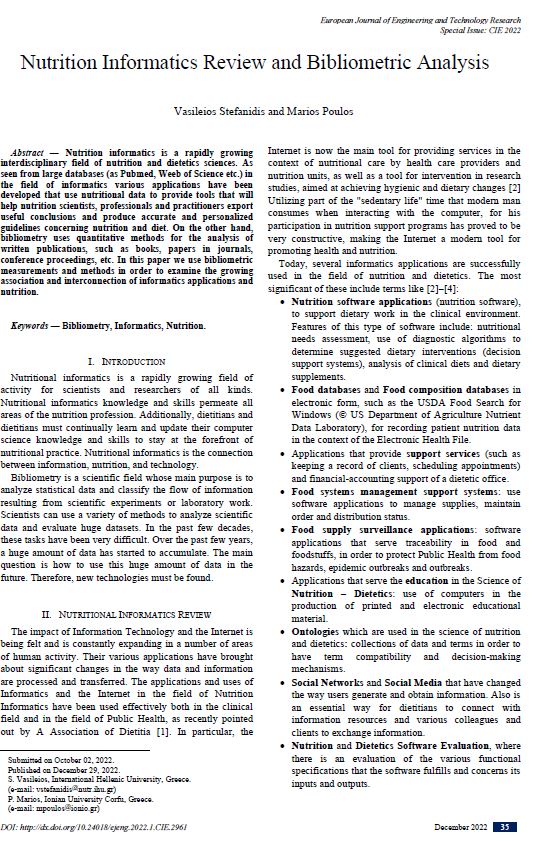 The special issue of the 14th Conference on Informatics in Education (CIE2022, http://events.di.ionio.gr/cie) is published under the European Journal of Engineering and Technology Research (EJ-ENG). The Conference on Informatics in Education is co-organized by the Department of Informatics of the University of Piraeus (https://www.cs.unipi.gr/) and the Department of Informatics of Ionian University (https://di.ionio.gr), Greece, in collaboration with the Greek Computer Society (http://epy.gr/) and under the auspices of the Hellenic Ministry of Education. This is the sixth consecutive year in which selected papers presented at the conference are published after blind review in the journal. The published manuscripts are selected under a double peered review process among a significant number of manuscripts submitted to the conference.